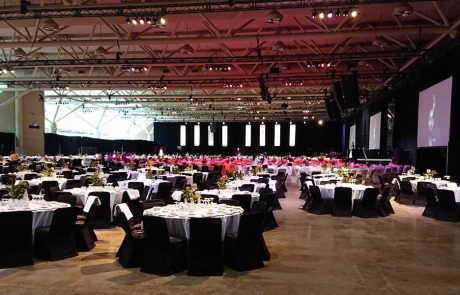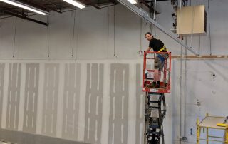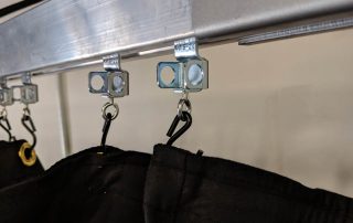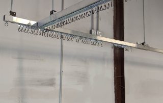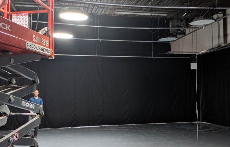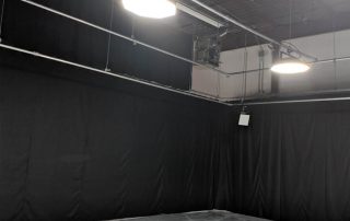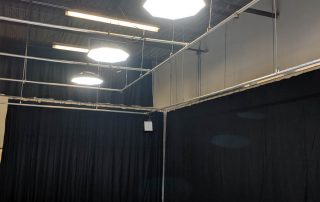 RnR custom designed a track system for all four walls in a 27Lx30Wx20H section in an empty area of their warehouse. Also, rigged an inner square on the ceiling within the four drape walls that allowed for an LED lighting system.